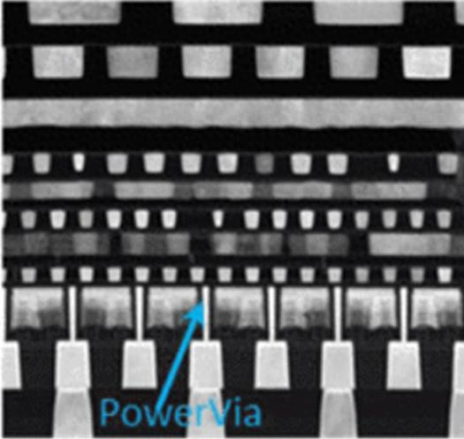 图 1:扫描电镜图像显示了 PowerVia 背面电源连接的细节